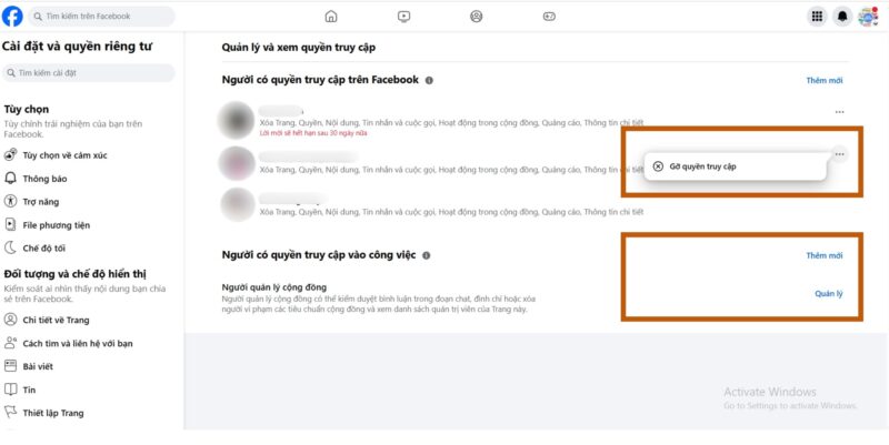 - Phân quyền, thay đổi hoặc thu hồi quyền của những người cùng quản lý Fanpage